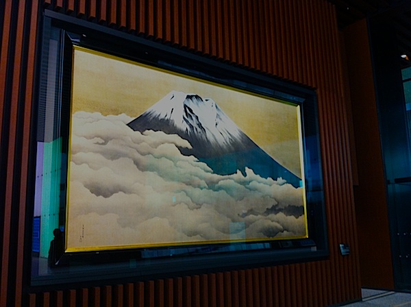 ロビーに飾られた巨大な日本画。横山大観「霊峰富士」(読売新聞社蔵)