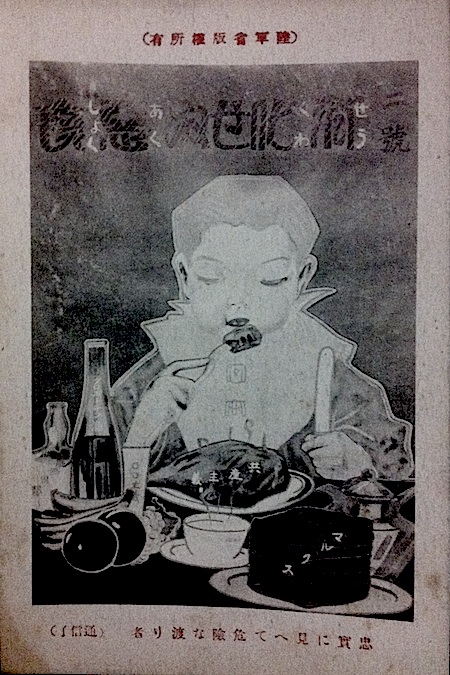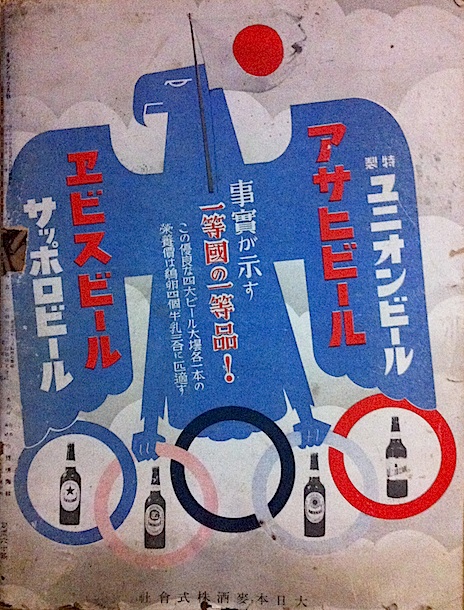 裏表紙の広告:「事実が示す一等国の一等品!この優良な四大ビール大壜各一本の栄養価は鶏卵四個、牛乳三合に匹敵す」マジで?そんなに栄養があるのか…どんどん飲もう!