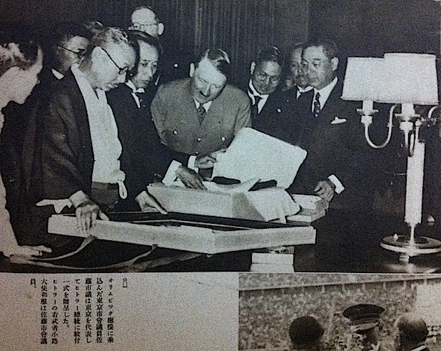 オリンピックの応援に乗り込んだ東京市議からヒトラー総裁へのプレゼント。
