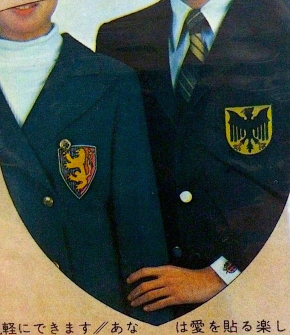 紺ブレの袖口に見え隠れする、白いカフスに貼られた赤いテントウ虫(ちっぷたっぷ)