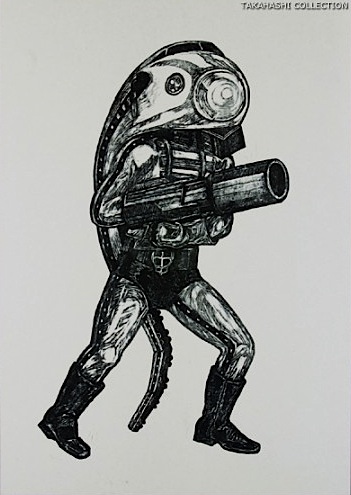 列島改造人間アラジル男は、只今オペラシティアートギャラリーで開催中「高橋コレクション展」にて観覧出来ます。その他戦闘員(センキョテロル、ドボッケン、弾丸レッシャー、ニシキゴイン)も廊下スペースに陳列されております。廊下はまあまあ長く会期は長い!6月28日迄。