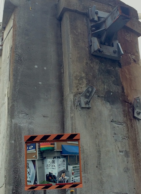 昨日、渋谷の大型コピー店に拡大した下絵を取りに行き、その道すがら、今もこの遺構が残っているのを目にして嬉しくなりました。渋谷〜代官山の地下化で無用となった東横線高架橋の残骸は、無作為に切断されたまま、野ざらしの身でありながらも古い門の遺跡のような偉容すら感じ、とても美しいです。
