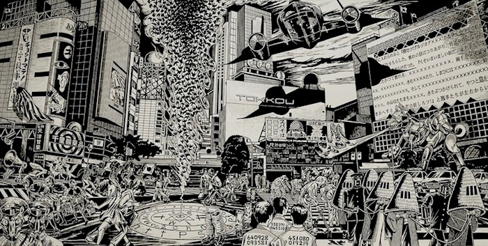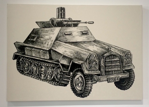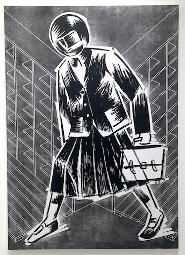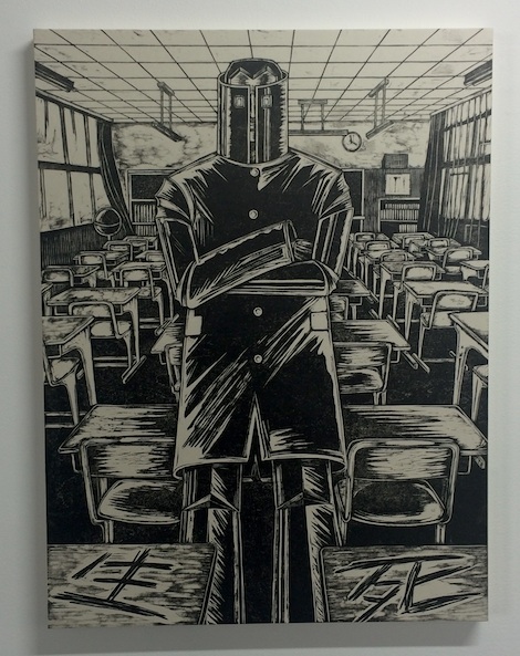 論評冒頭ではモダンアートの棟方から現代アートの風間へと木版画アウトロー伝承が記され、さらに中盤では〝1980年代のヤンキー漫画「熱笑!!花沢高校」から受けた影響を風間は隠さない″と、どおくまん先生へのリスペクトも紹介されいる(そう、私は芸術の先輩への尊敬をいつだって忘れない)棟方志功もどおくまんも独立した黒い世界が素晴らしい。
