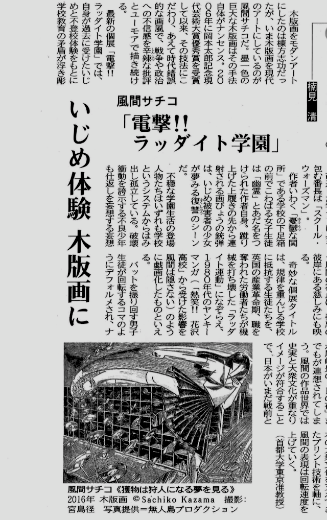 昨日の上毛新聞朝刊に、楠見清さんが執筆して下さったラッダイト学園の展評が掲載された。上毛新聞は群馬県前橋で発行されている地方紙なので、群馬の新聞購読者はすでに終業した我ラッダイト学園の存在をこの紙面で知ることになるだろう!
