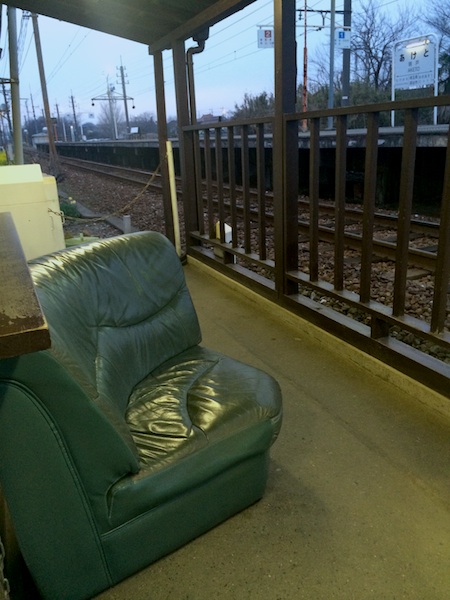 プレハブ無人駅には不釣り合いな高級ソファーに身を沈め今日の遠足を回想(スマホの写真チェック)