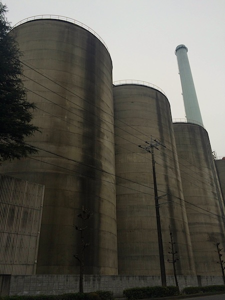 空自熊谷基地と太平洋セメントを隔てる直線道路では、林立するタンクの偉容を眺めることができる( 複雑な構造のプラントよりこちらのほうが好み)