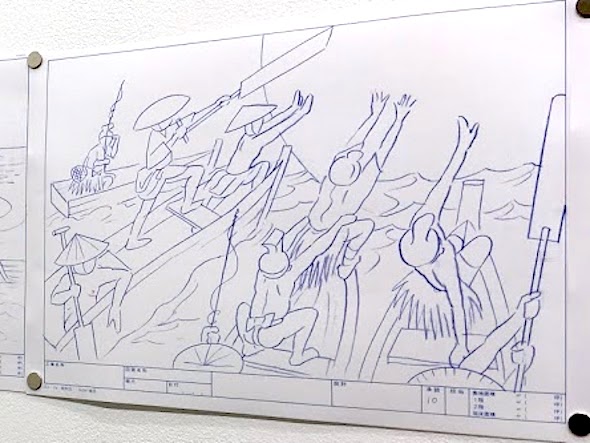 本来絵巻というのは「右から左に」読むものと知りつつ、「左から右」の欧米スタイルを採用したために、お話のオチから読んでしまう観客が続出!いちおう(珍しく)結末を用意しているので、ぜひタイトルのある左から読んで頂きたいです。(頭から読んでも意味不明と言われたけど)