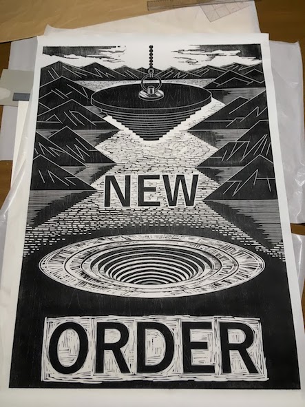 特注サイズの版木に苦心した新作『クロベゴルト』(KUROBE GOLD/ローレライ/ファゾルト&ファフナー/侏儒の王国/新秩序/ヴァルハラ) の計6点が一昨日やっと刷り上がり、本日から無人島に作業場を移して仕上げに取り掛かる。どうにかディスリンピックの悪夢再来とならずに済んだ!